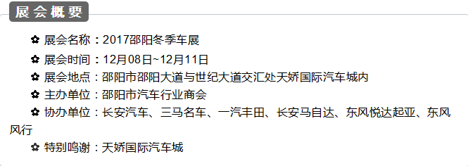 12月08日-11日,邵陽(yáng)天嬌國(guó)際汽車(chē)城