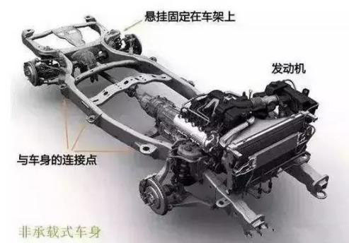 非承載式車身與承載式車身對比: