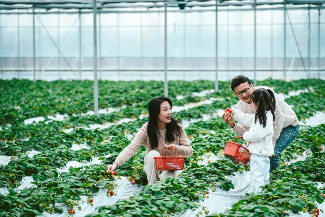 上周去蒲江果園采摘耙耙柑之后,女兒迷上了采摘活動(dòng)。正好現(xiàn)在是成都冬草莓采摘季,于是這個(gè)周末,李先生又帶著家人來(lái)到成都近郊的蔚然花海“摘草莓”。