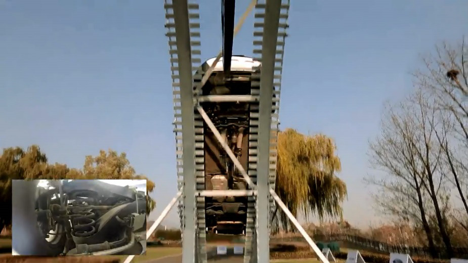據(jù)了解,這個6米駝峰的最大爬坡角度達到了60°之高。沒概念?還記得當年的“SUV爬坡門”么?據(jù)說那個讓SUV都“身陷囹吾”的坡,角度也只有30°左右。而坐在翼虎爬駝峰,真的做到了“四十五度角仰望天空“,畢竟你眼前再也沒有地面了……