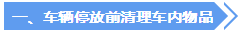 1.停放之前清理車內(nèi)食物、飲料、包裝袋等物品,防止發(fā)霉。